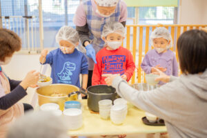 大きなお鍋やお釜が保育室に降りてきて・・いい匂い♡